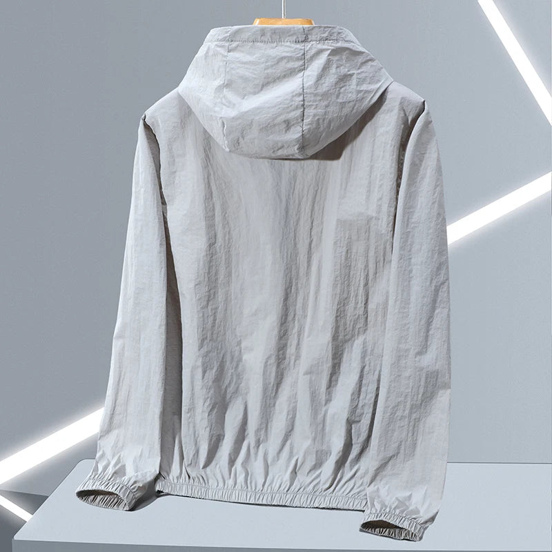2023 Summer Men's Windbreaker Big Size Sun Protection Clothing Korean Style Ultra-thin Streetwear Zipper Hooded Jackets Man