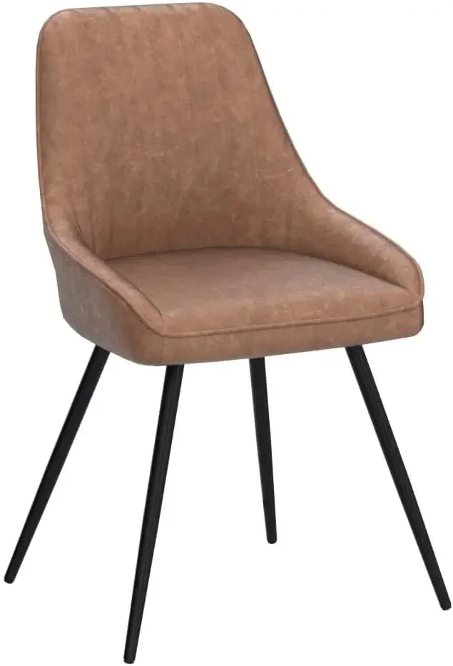 Alunaune Brown Modern Dining Chairs Set of 2 Upholstered Kitchen Chairs, Mid Century Faux Leather Leisure Accent Chair