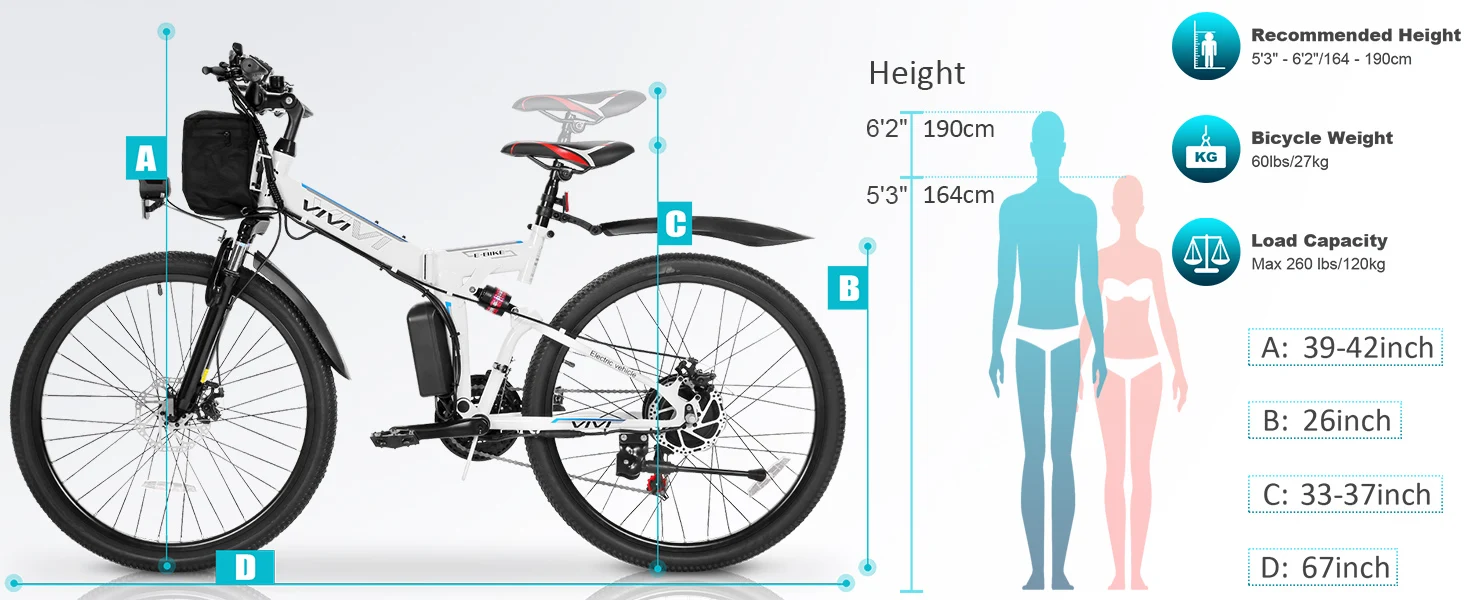 Vivi 26" Folding Electric Bike/ Electric Mountain Bike/ Electric Bike for Adults