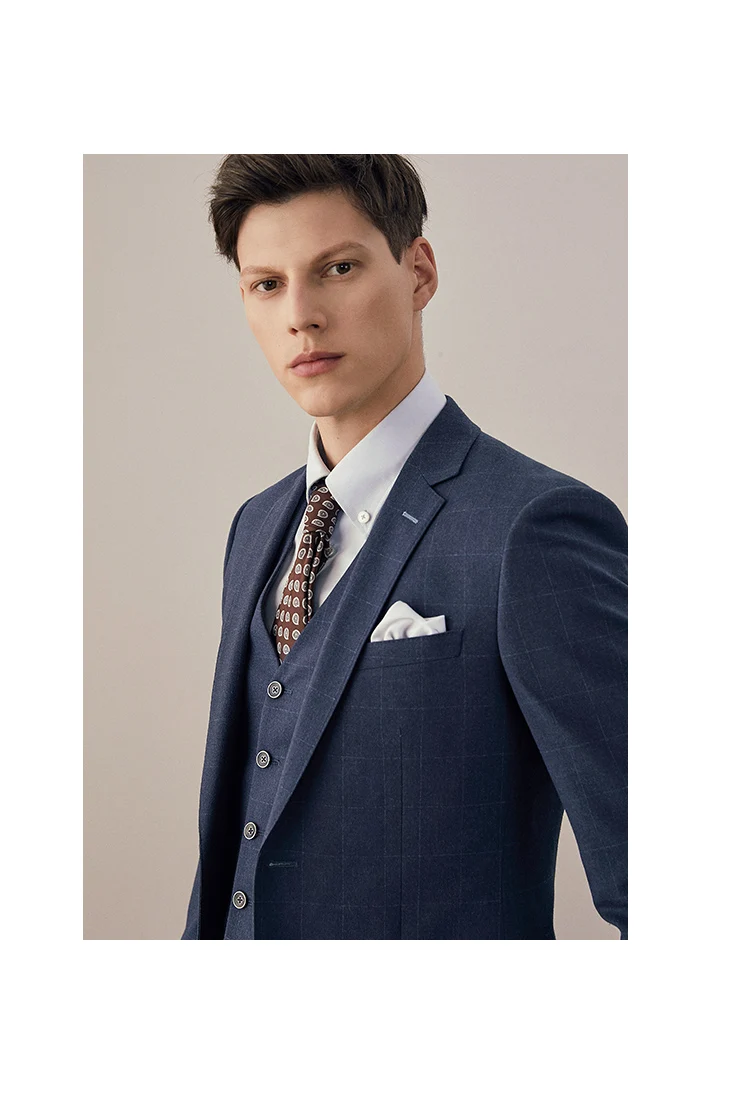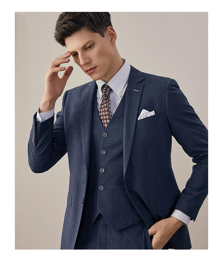 Blue Plaid Men Suit Set Groom Wedding Dress Business Man Wear Slim Style Casual Blazer Vest Pant Set Plus Size 56A