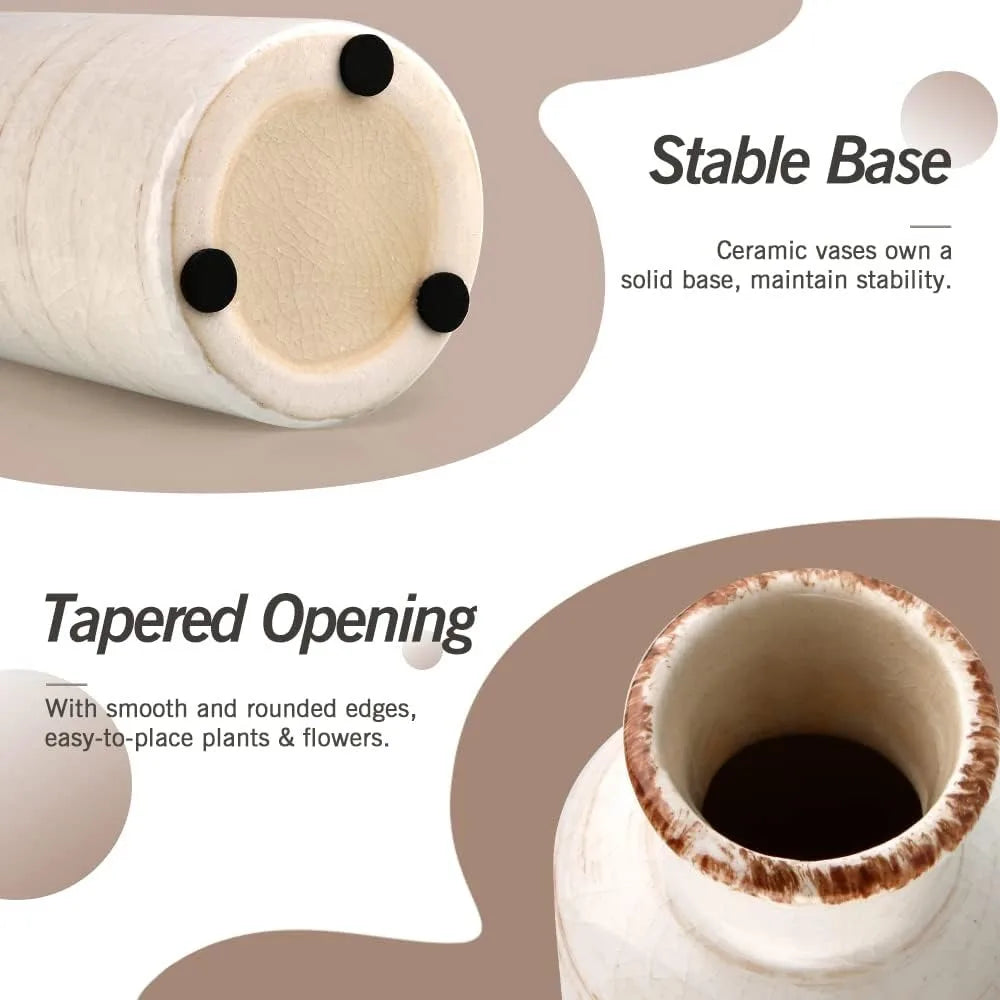 - 4. Decorate Your Home with Personality: These decorative rustic white ceramic vase sets will fit in with an abundance of styles for any home decor needs; modern farmhouse, rustic, classic charm, country, and elegant yet simplistic. The versatility of these faux floral vase sets makes them perfect to use for parties, weddings, mantels, dining rooms, bathrooms, brides, and baby showers. Create a space in your home with refined rustic, yet elegant and effortlessly beautiful home decoration.