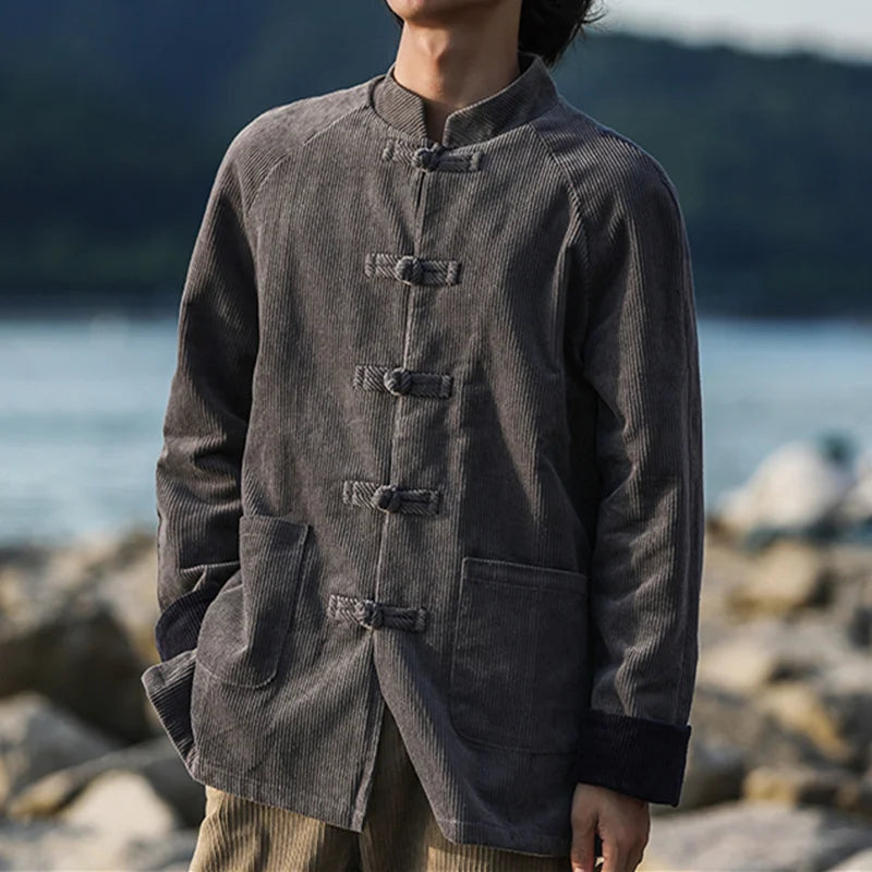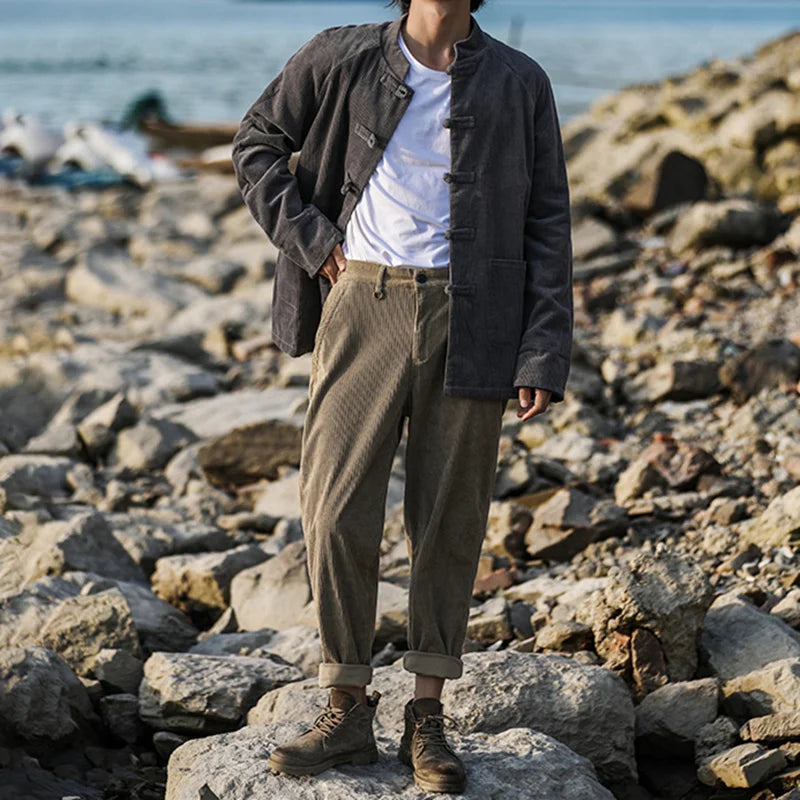 Chinese Traditional Dress Corduroy Casual Jacket Spring Autumn Fashion Plus Size Thick Coat Men Clothing Tai Chi Tang Suit Male