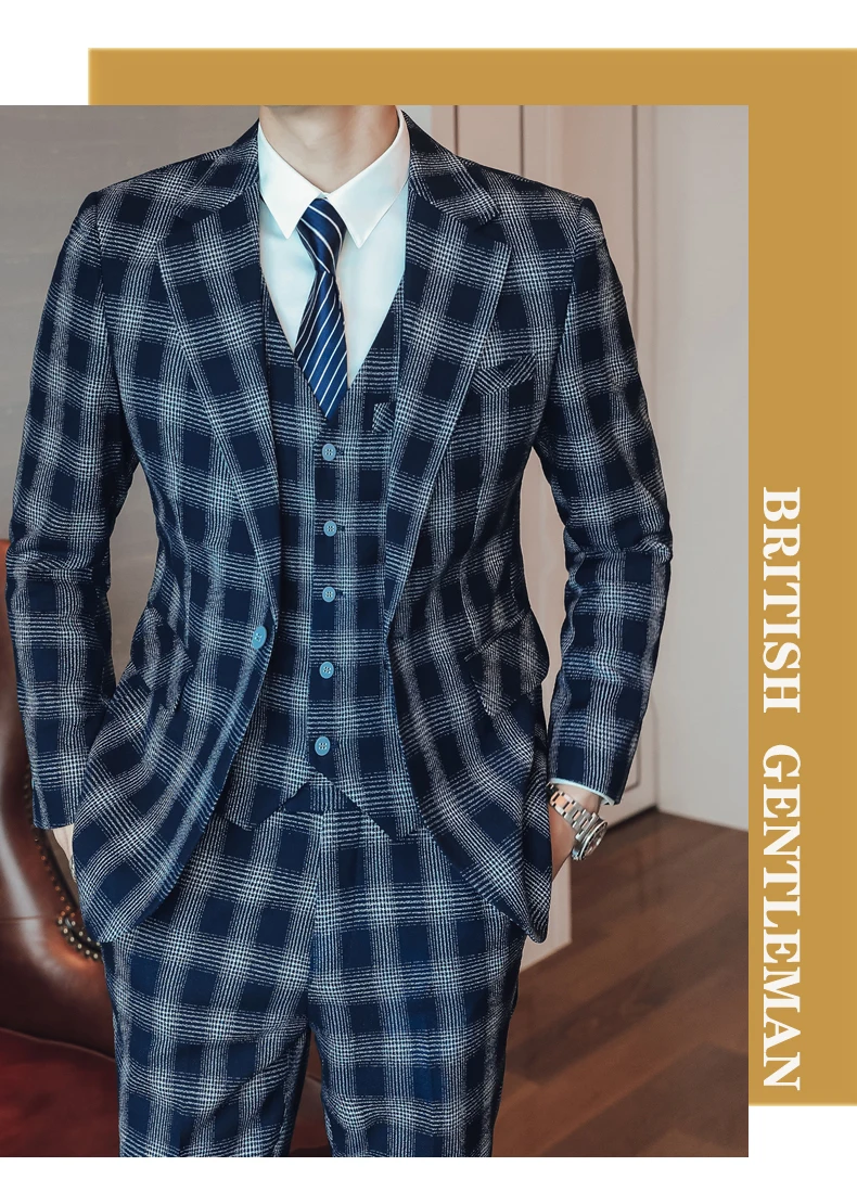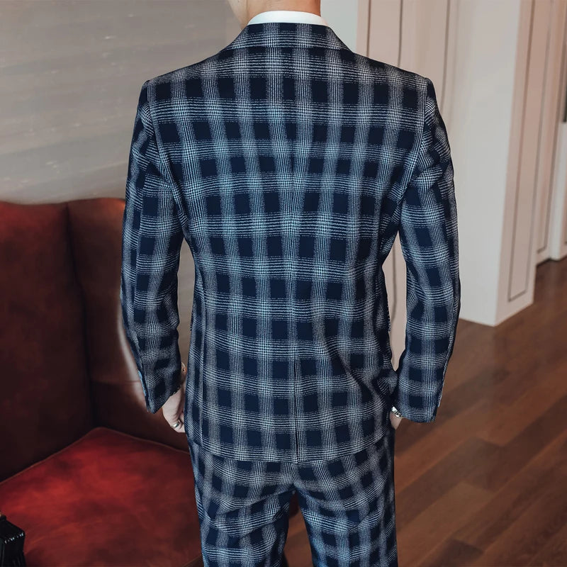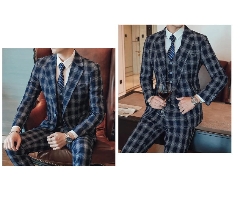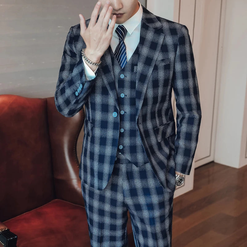 Cotume Homme Men Casual Wedding Suits Grooms Suits Mens Evening Suits Set Plaid Suits Mens Smoking Party Dress Prom Men Clothing