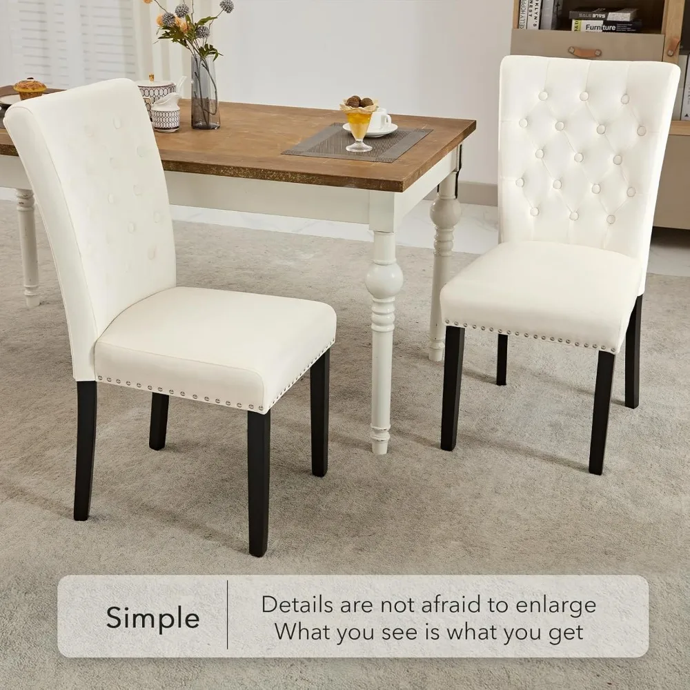 - SOILD AND STABLE: The stable solid wood frame plus four solid wood legs make the dining room chair strong and durable. The tufted chairs back and rear legs of are curved, effectively prevents the room chair from tilting backwards.