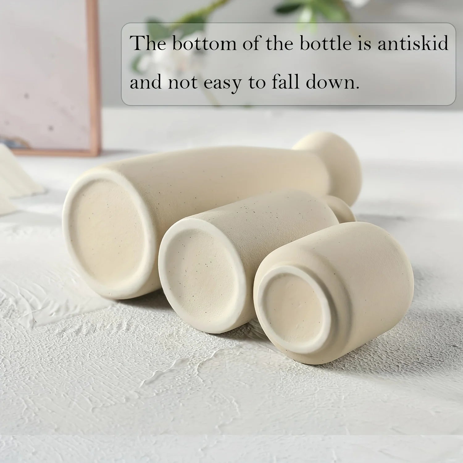 Distressed Ceramic Vase Set of 3, Modern Bohemian Farmhouse Home Decor, Pampas Grass Dried Flowers Vases for Living Room, Dining