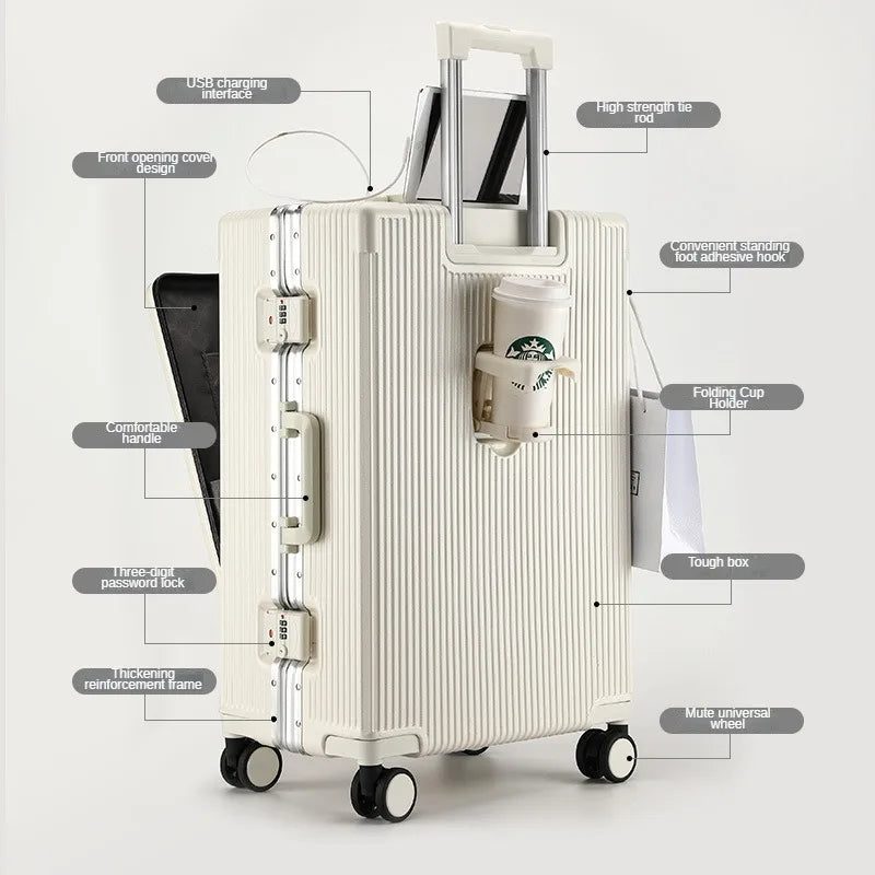 DOIAESKV front open trunk side buckle front open lid tie rod aluminum frame large capacity usb charging belt cup holder