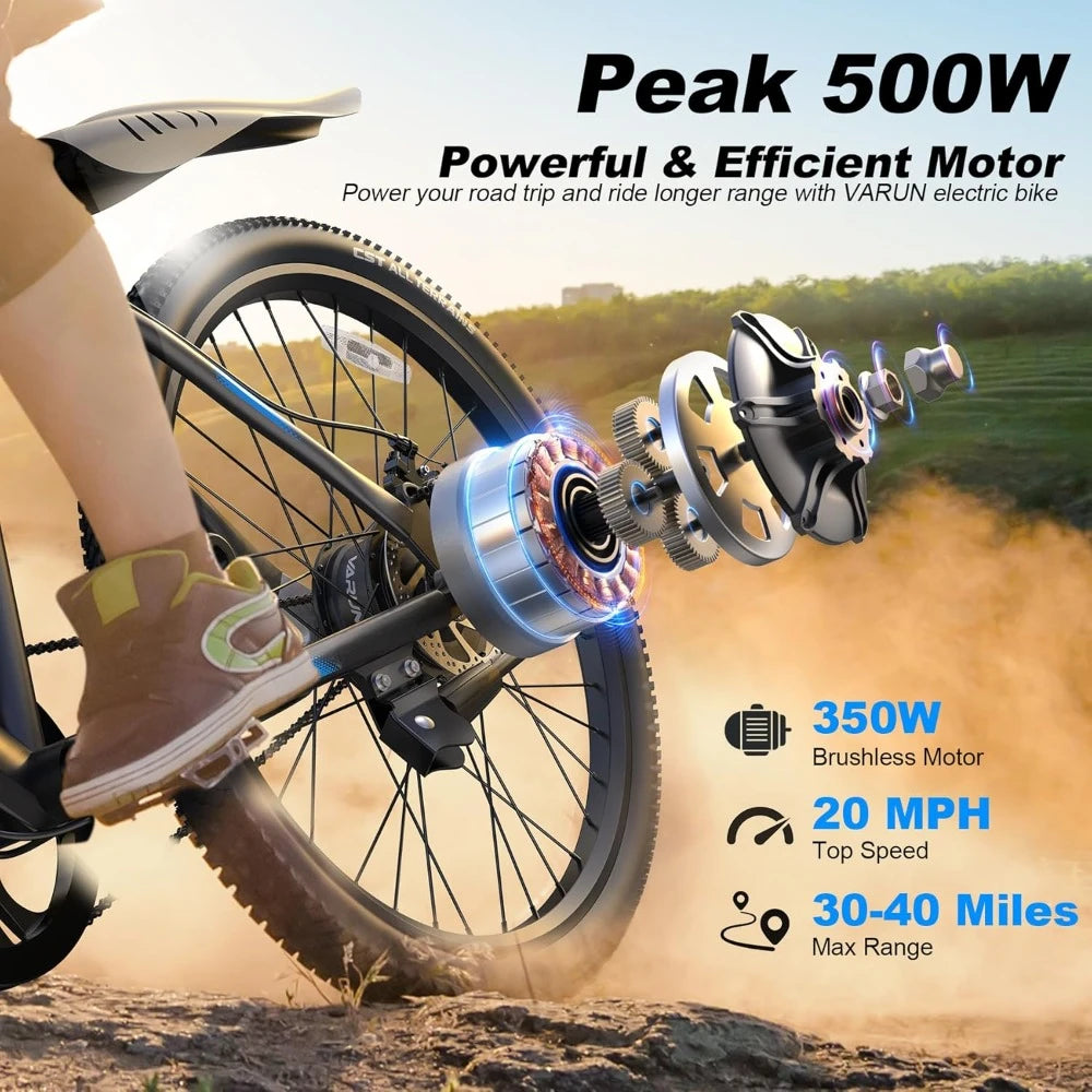 - ๐ต๐ปโโใ๐๐ฒ๐ง๐๐ฆ๐ข๐ ๐๐๐๐ ๐๐ซ๐ฎ๐ฌ๐ก๐ฅ๐๐ฌ๐ฌ ๐๐จ๐ญ๐จ๐ซใ Elevate your ride with the electric bike, featuring a dynamic 350W motor that surges to 500W for high-speed performance. Achieve speeds up to 20 MPH with smooth 24'' tires, ideal for navigating both urban landscapes and mild hilly terrains with easeโperfect for commuting, traveling, or just enjoying a leisurely ride.