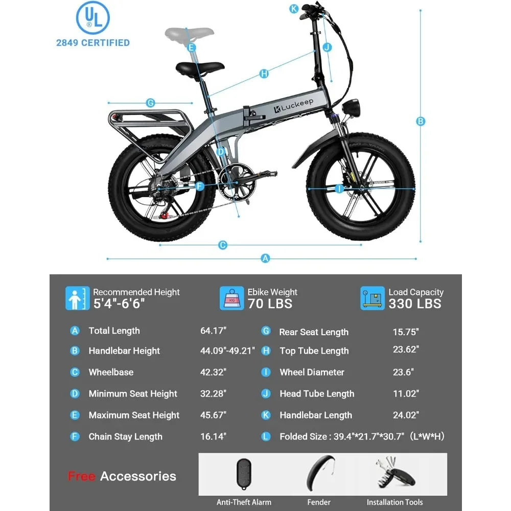 HYDRAULIC DISC BRAKES: The folding electric bike for adults has more sensitive and durable hydraulic disc brakes on the front and rear, which provide better stopping power and shorten the braking distance by 50% compared to mechanical brakes. electric bikes have obtained various international safety certifications, including UL 2849 certified.