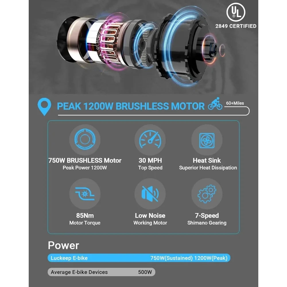About this itemBAFANG MOTOR WITH 1200W PEAK: Experience the power of the BaFang motor, designed for superior heat dissipation and a longer lifespan than ordinary motors. 750W high-speed brushless motor provides powerful and efficient assistance, allowing you to easily tackle hills and ride longer distances. Reach up to 30MPH Max speed and 85N.m torque.