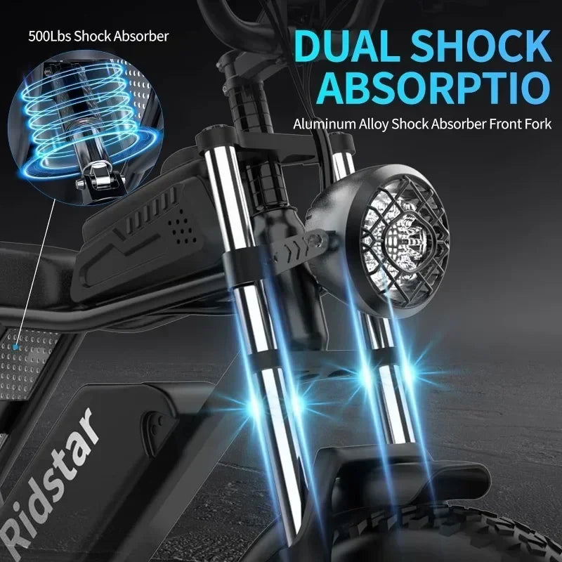 Front and Rear Shock AbsorberOur adult electric bike features front suspension fork and rear shock absorber, which effectively minimizes the impact of bumps during riding. This results in a smoother and safer ride, reducing the risk of injury or overturning. |