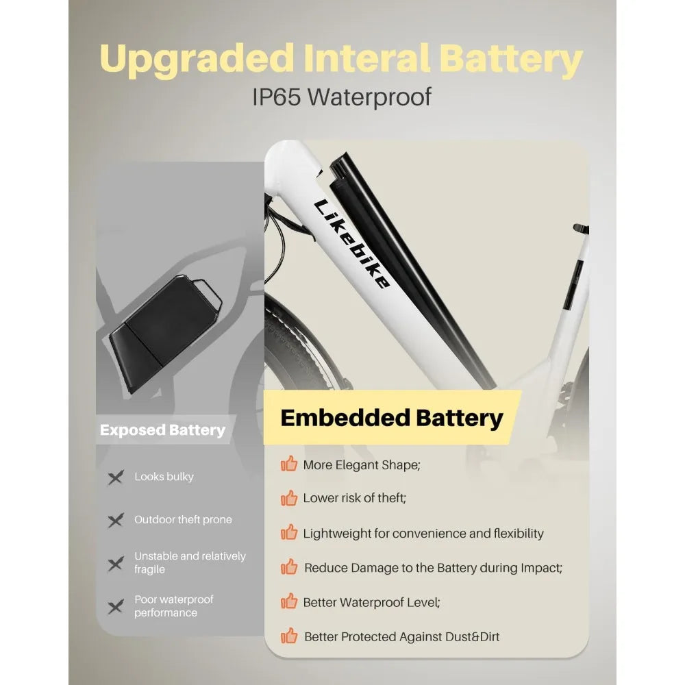 - Embedded Battery Design: Seeker S city ebike equipped with a 36V 9Ah UL certified Li-ion battery, offers a pure electric mode range of 24-30 miles and a pedal-assisted mode range of 30-45 miles, you can also ride it as a normal road bike for longer distance.