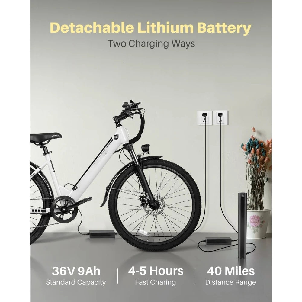 Electric Bike, UL 2849 Certified, Step Through Electric Bicycle with 350W Motor, 36V 9Ah Removable Battery, 20MPH E-Bikes
