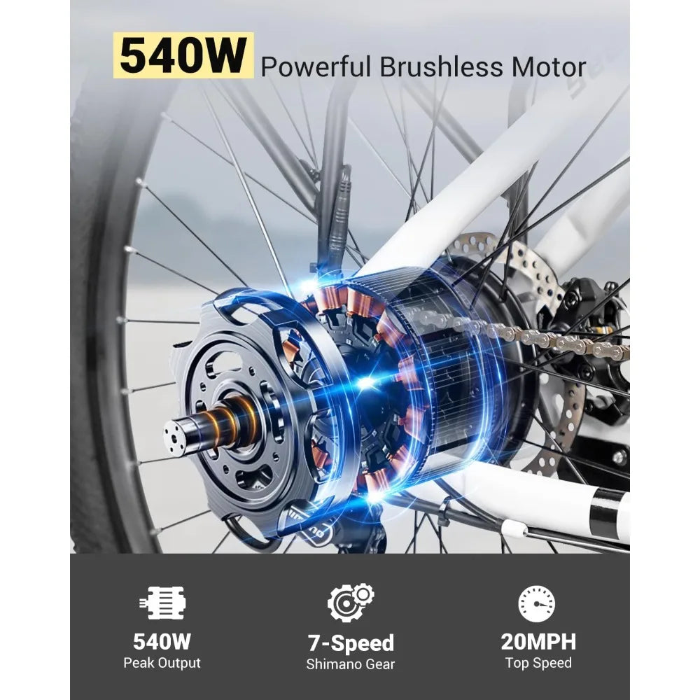 - 350W Powerful Motor: Easily climbing of road slopes and passing through bad roads with the 350W powerful motor (Peak 540W), provide a maximum speed of 20 MPH. Improving the passability of cycling and obtaining a better riding experience.