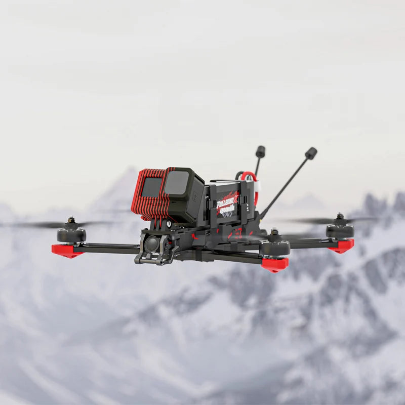 The KING of Long Range FPV! Another breakthrough in FPV visuals from DJI with our upgraded frame and electronics. A super-efficient iFlight 7.5inch Long-Range bird that can go where you couldn't go before and can carry bigger batteries to get the flight time to surf the swiss alps if you want! A super stiff frame for minimum resonance and XING2 2809 motors for maximum 7.5inch prop control. Fly big batteries top-mounted, or even bigger batteries bottom-mounted, 6cells recommended or 5cells for slow cruising. But whatever style you fly, a Lipo or Lion pack will just do the job. Recommended 5S 3.000mAh above (slow cruising) or our new 6S 3300mAh battery.