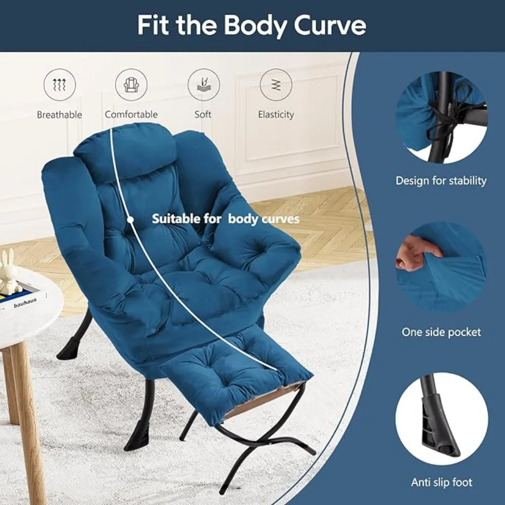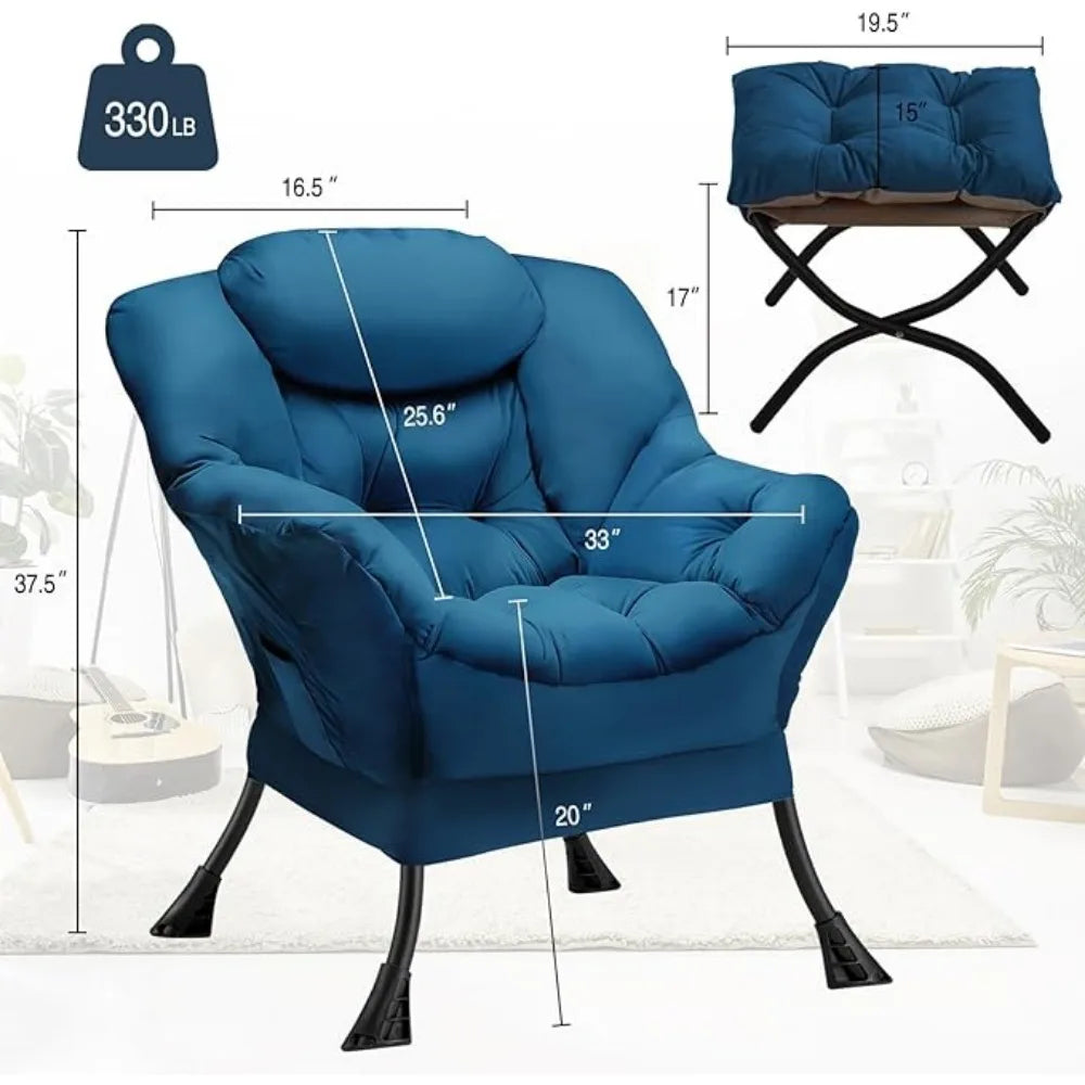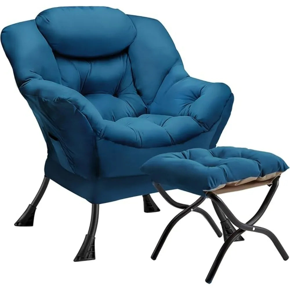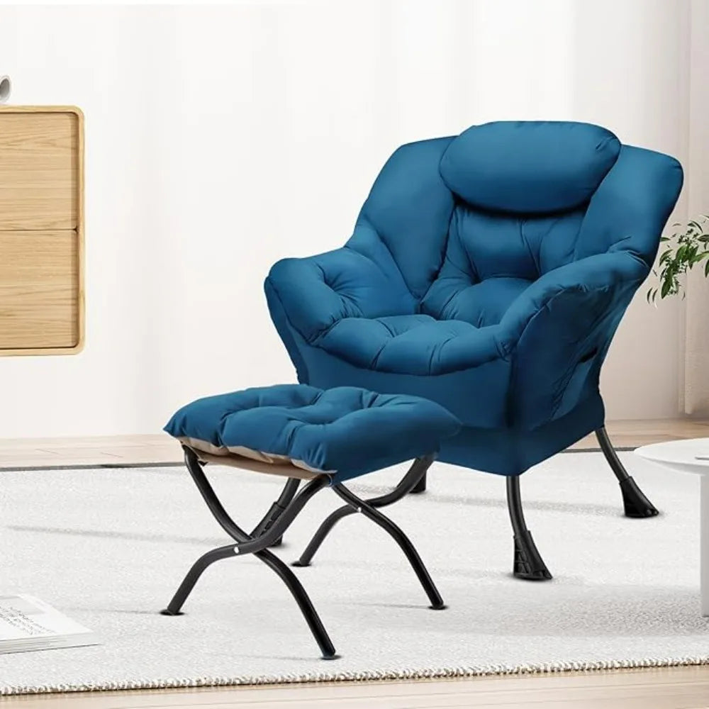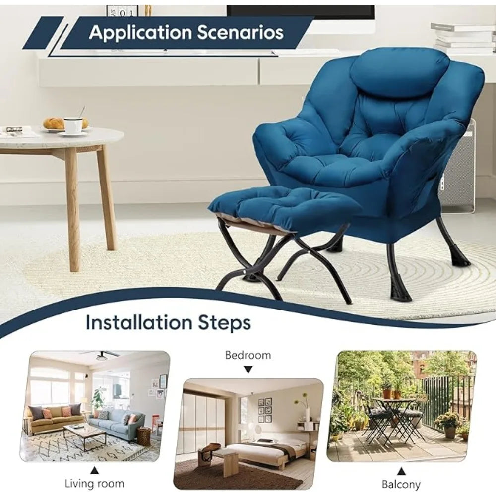 Lazy Chair with Folding Ottoman Modern Large Accent Chair,Contemporary Lounge Leisure Sofa Chairs