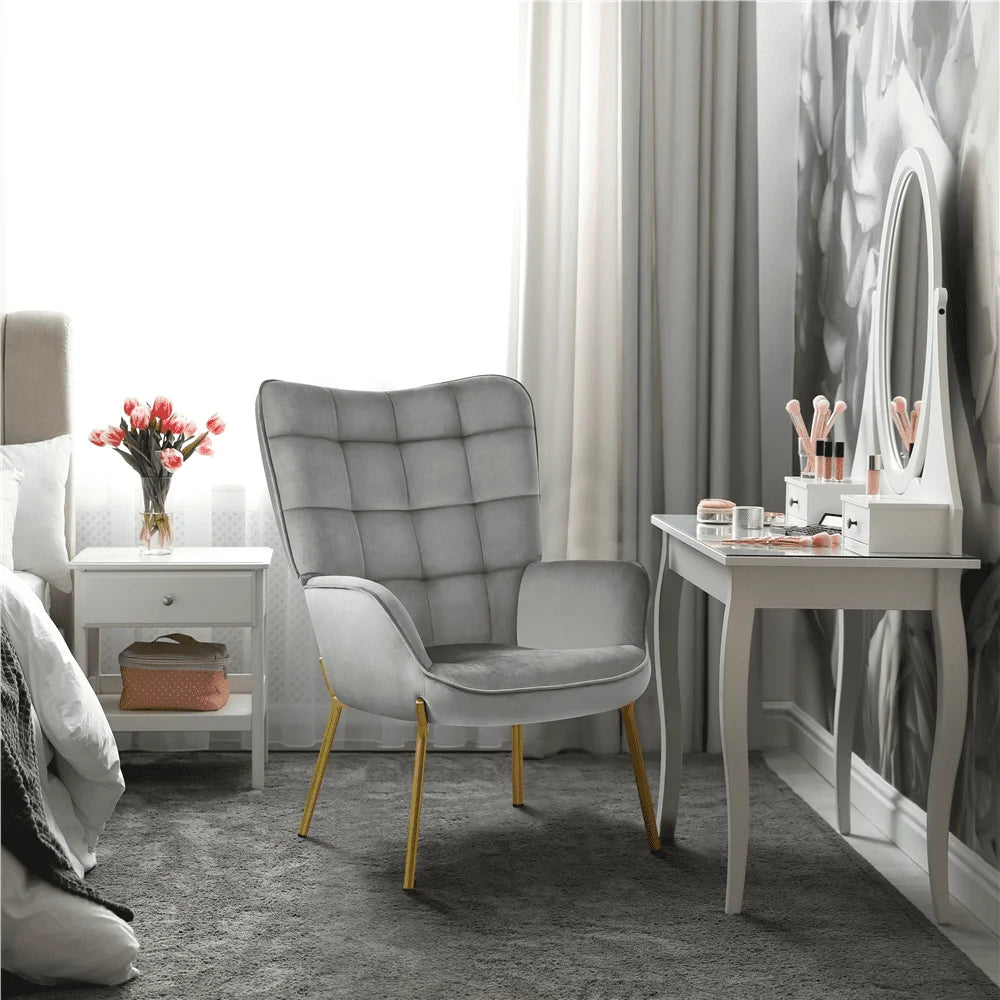 - Modern Velvet Upholstered Accent Chair with Tufted High Back,Light Gray: