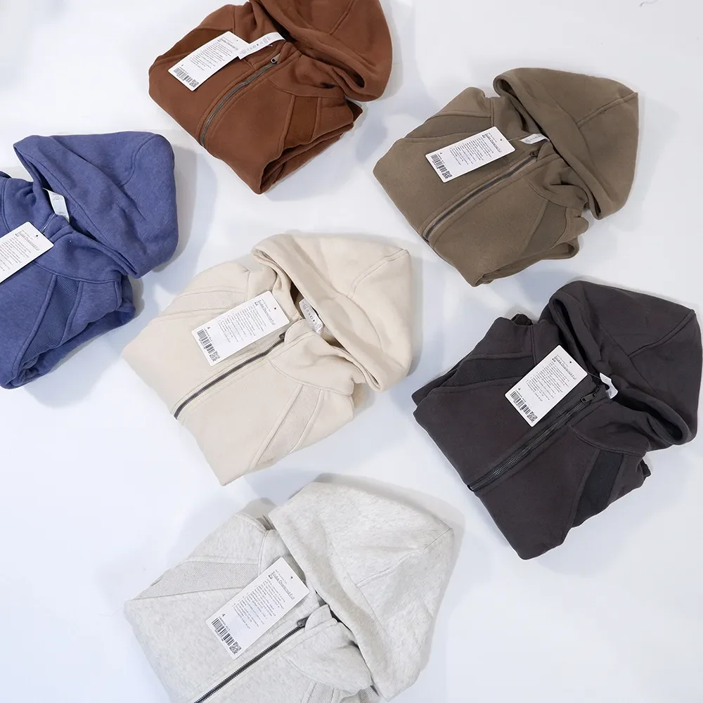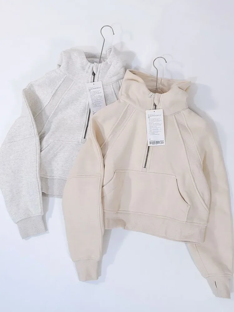 Oversized Scuba Half-Zip Hoodie Waist Length Jackets Sweatshirts Soft Thumbholes Leisure Yoga Coat for Winter