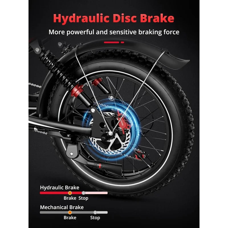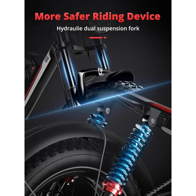 - 【Hydraulic system】 S8 ebike equipped with high-strength hydraulic full suspension . It effectively reduced the vibration of the frame. The lockable high-carbon steel suspension front fork has a good shock absorption effect, which can offer you safer and comfortable riding experience.