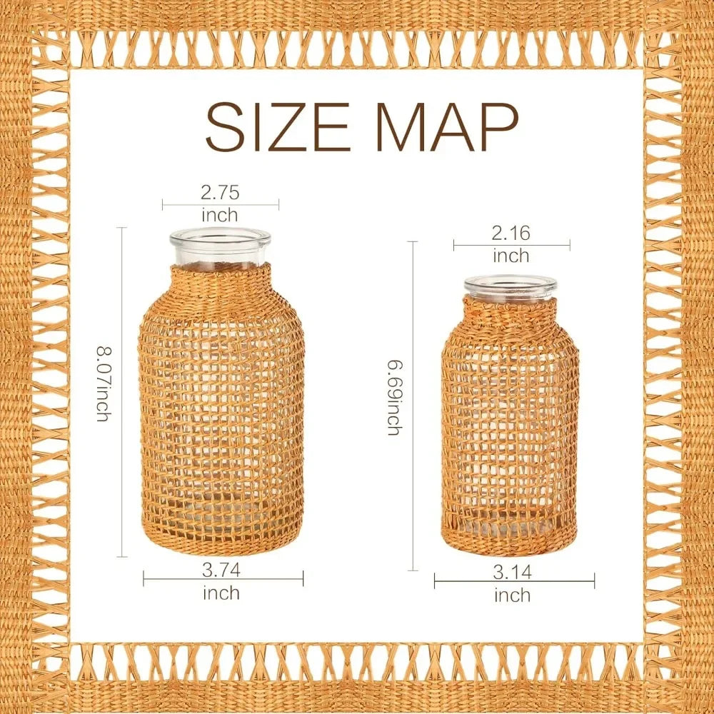 - Handmade Woven Vase: Zens rustic vase cleverly combines straw woven handicraft on the glass vase perfectly, formed texture is flat and smooth. handcrafted to create a unique vase artwork, boho farmhouse style makes your home life no longer monotonous.