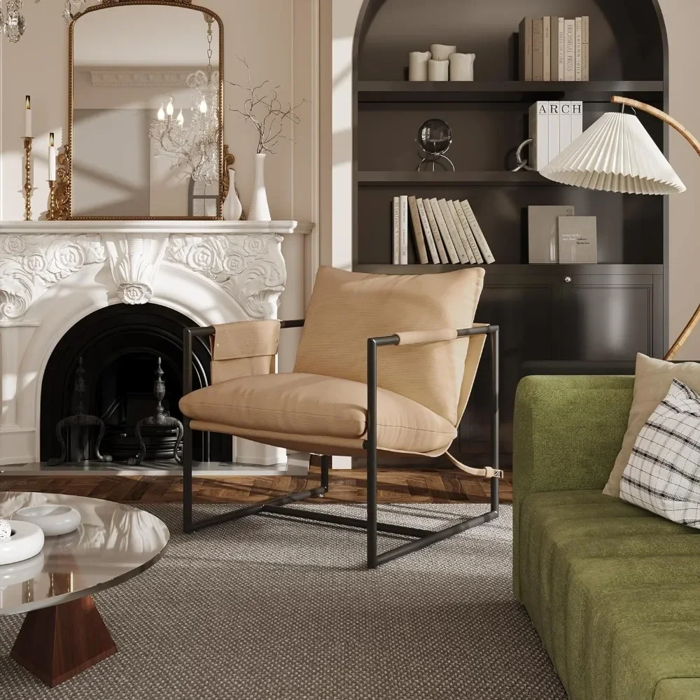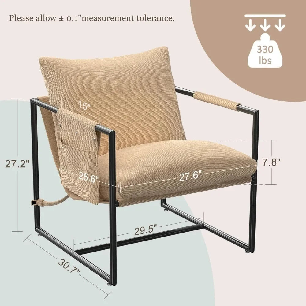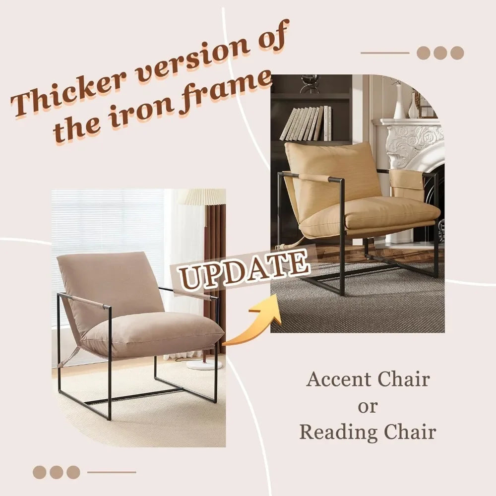 Sling Accent Chair for Living Room, Mid Century Modern Metal Frame Armchair for Reading Room, Bedroom Chair with Removable