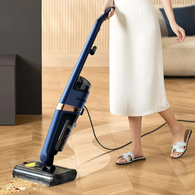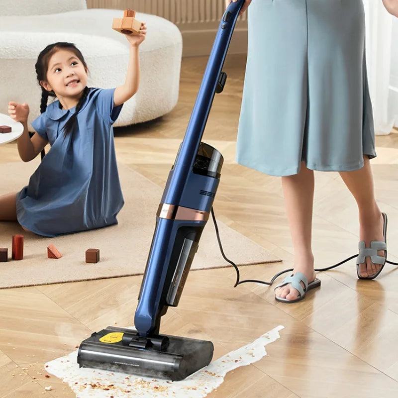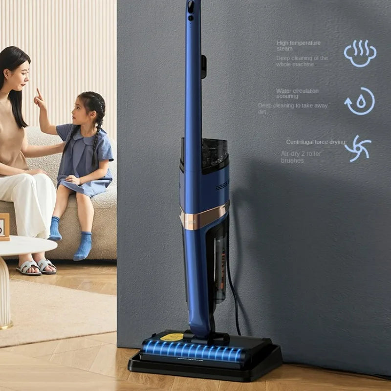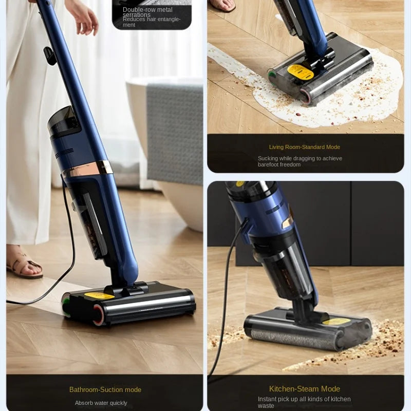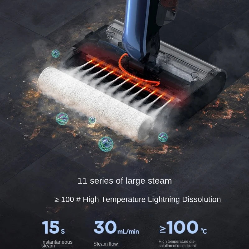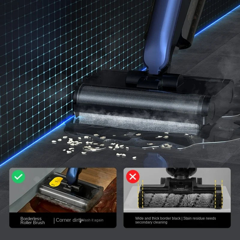 Steam Floor Scrubber, Dual Roller Brush Automatic Cleaning Dry Wet Cleaning Vacuum Suction Mopping Integrated Electric Sweeper