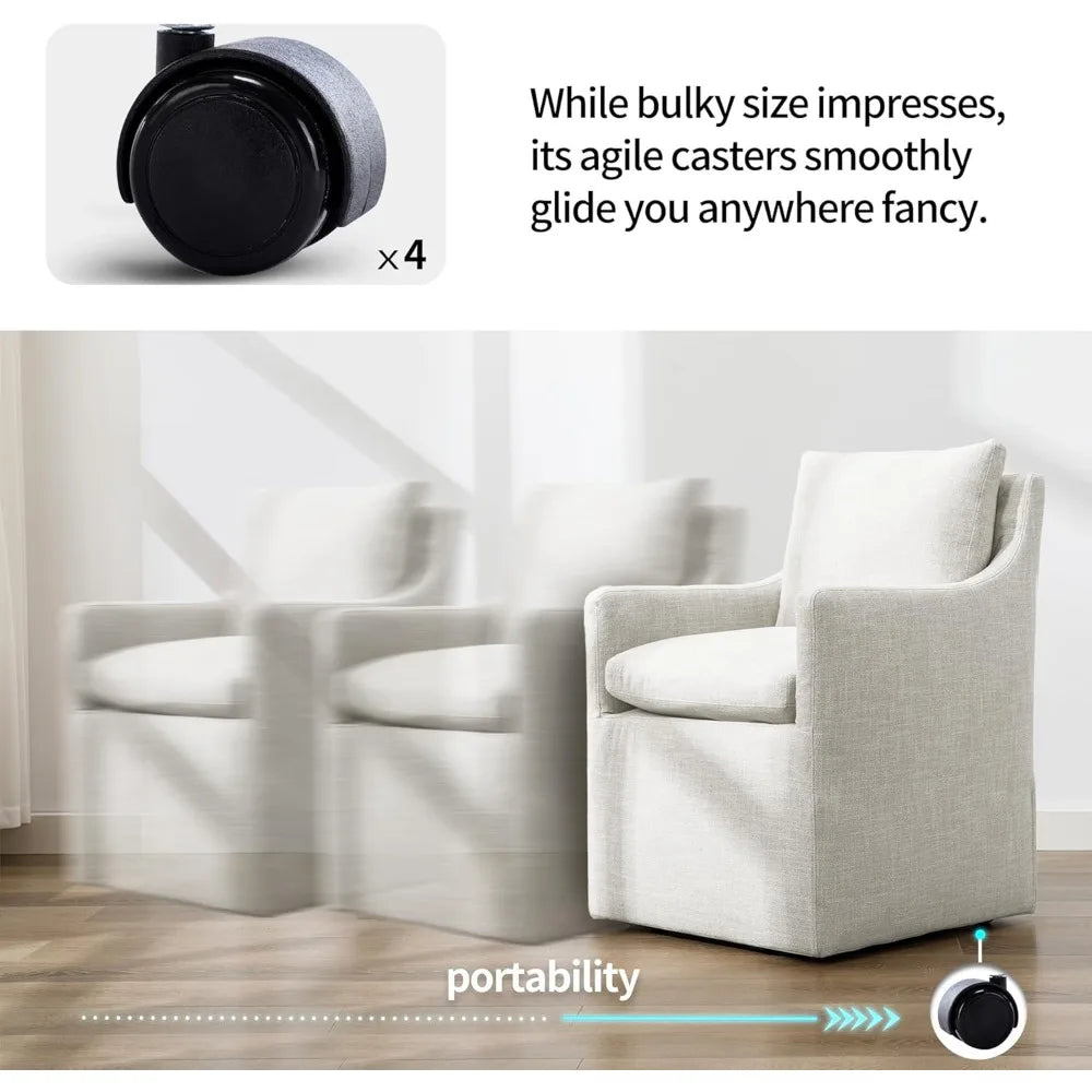 Upholstered Dining Chairs Set of 2,Linen Accent Chair for Living Room,Single Sofa Chair with 4 Casters,Upholstered Arm Chair